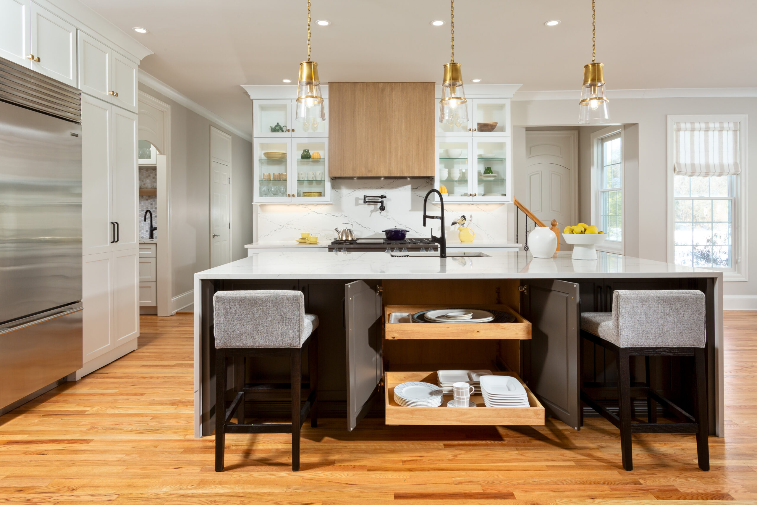 This Niskayuna kitchen transformation reimagines a once dark, enclosed space into a light-filled, open-concept showpiece. By removing a load-bearing wall and installing a structural beam, the Kitchen & Bath World team seamlessly connected the kitchen and living room—enhancing flow, function, and natural light.